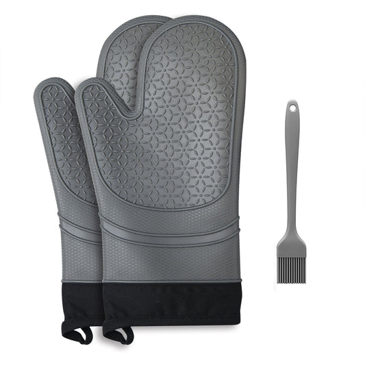 Max 50% off - One Pair Silicone Oven Gloves with Mini Oven Gloves Brush, Pack of 3 (Gray)