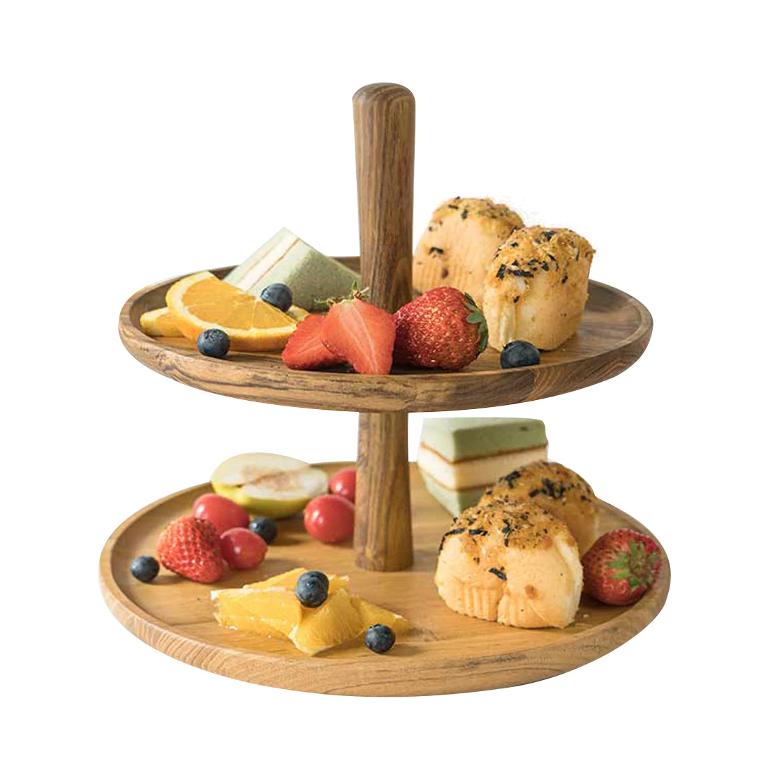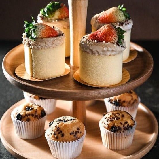 • This cake stand is 100% organic Teak wood, which is a kind of, durable, food-Grade Wood. So it's reusable and clean which good for the environment as well. Compared to other cupcake stands, it is much thicker, stronger and stores