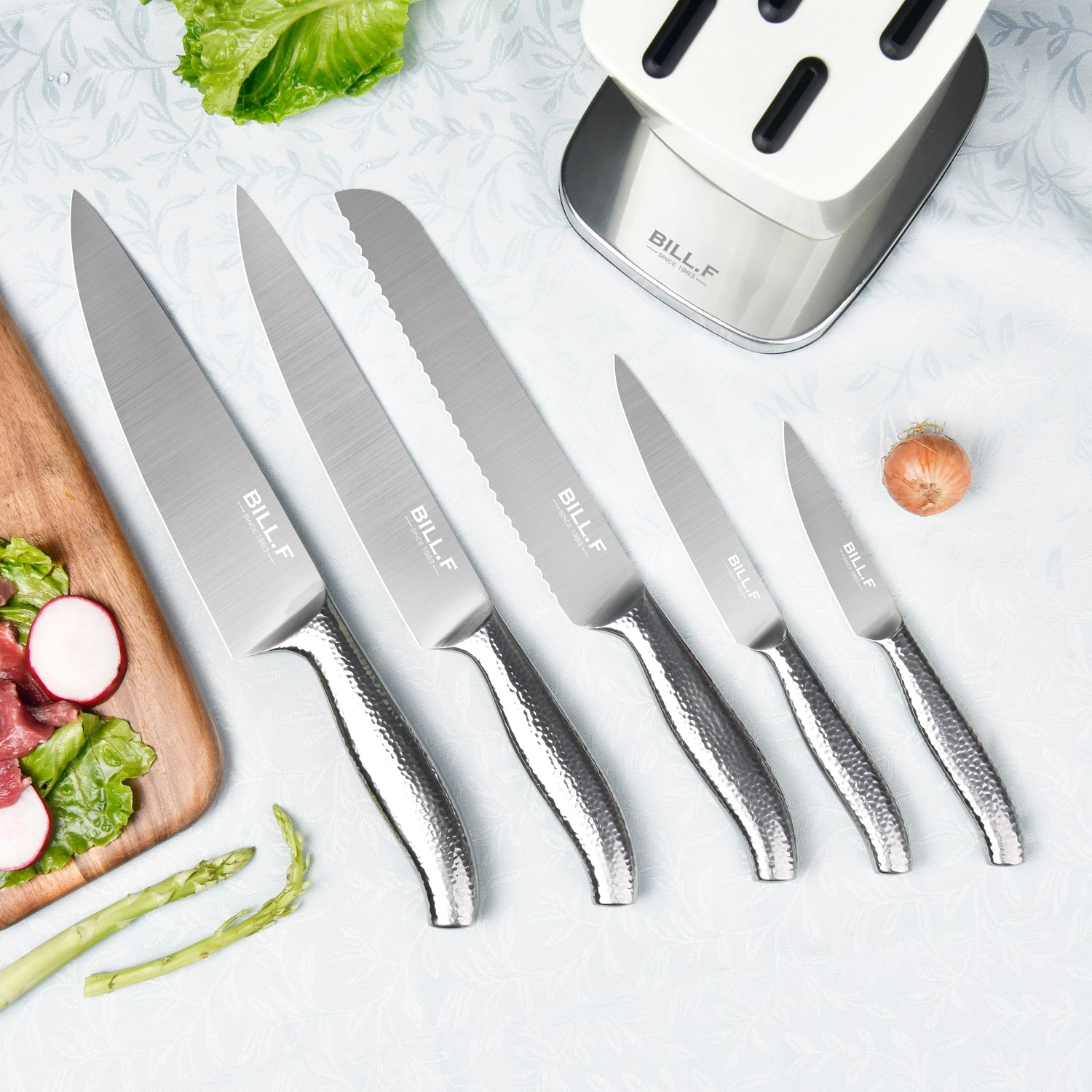 Includes a bread knife, chef knife, slicing knife, utility knife, and a paring knife for a whole range of tasks. Whether cooking is your passion or hobby, we guarantee you will love this set!